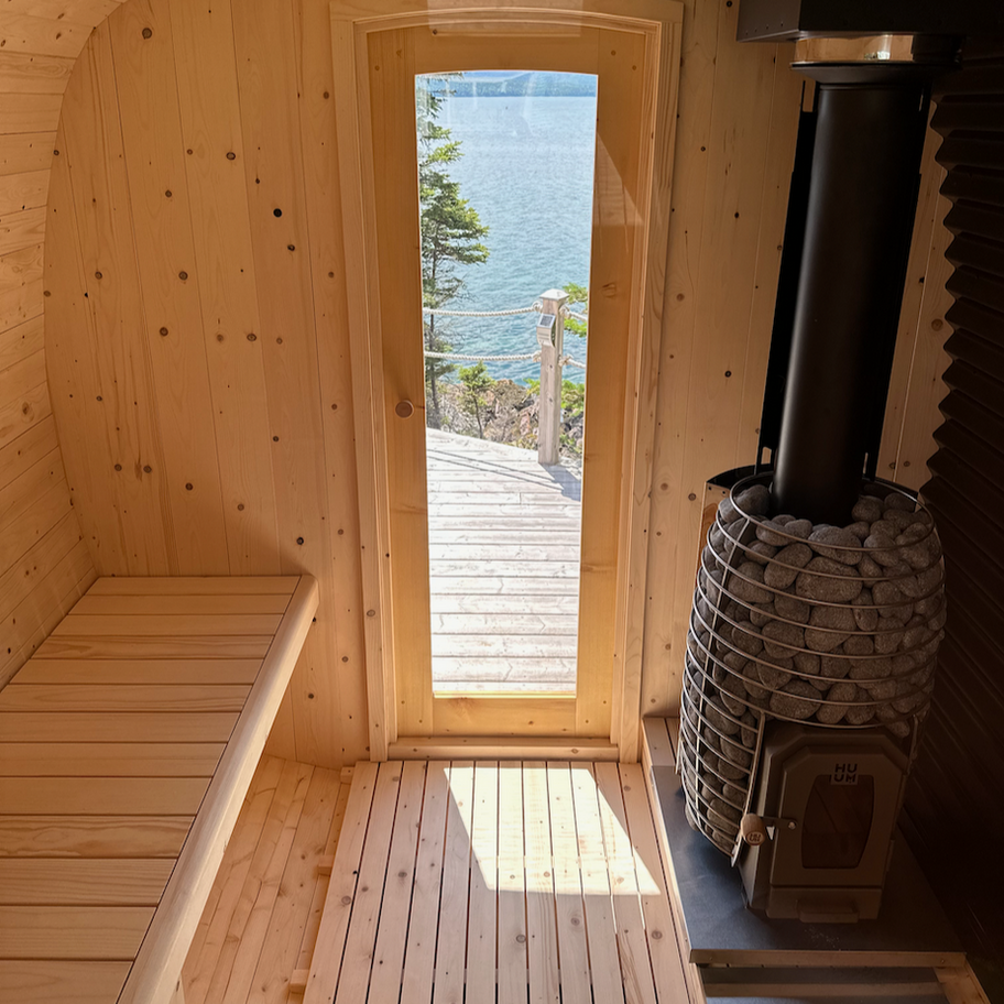 Our 6 person barrel sauna, the Kuusi, is a great option for the sauna bather who wants space to work out, do yoga, and share quality time in the sauna with friends and family.